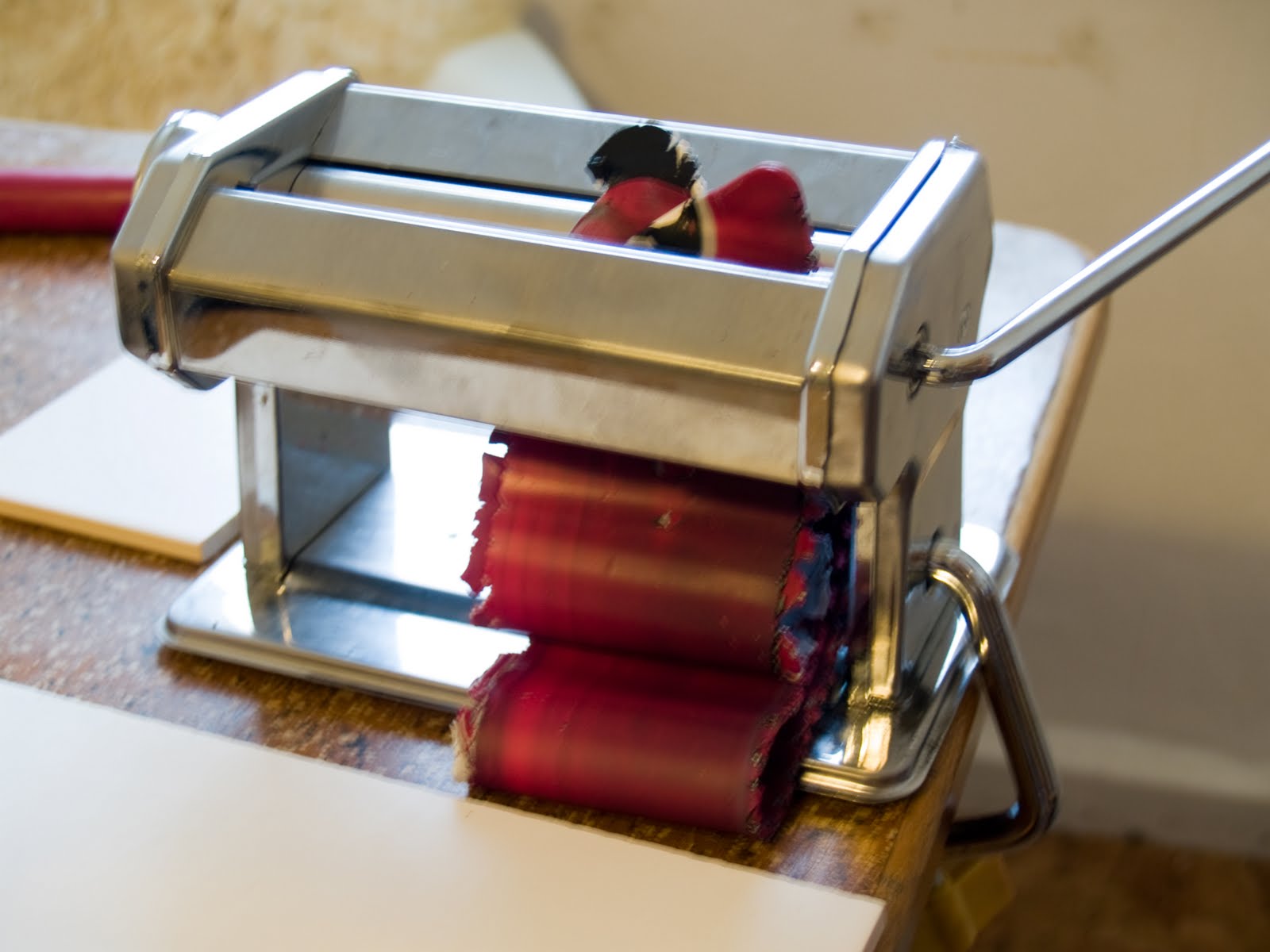 Hier noch ein paar Pseudo-Entstehungsbilder - mein handgezeichneter Entwurf 8und die daraus resultierende Vektor-Vorlage, beim Mischen des Rottons in der Pastamaschine und auf dem letzten Bild Versuche die Cane rechteckig zu quetschen. Hat geklappt und ich habe mir auch schon ein nettes paar Ohrringe in quadratisch fimoliert^^.