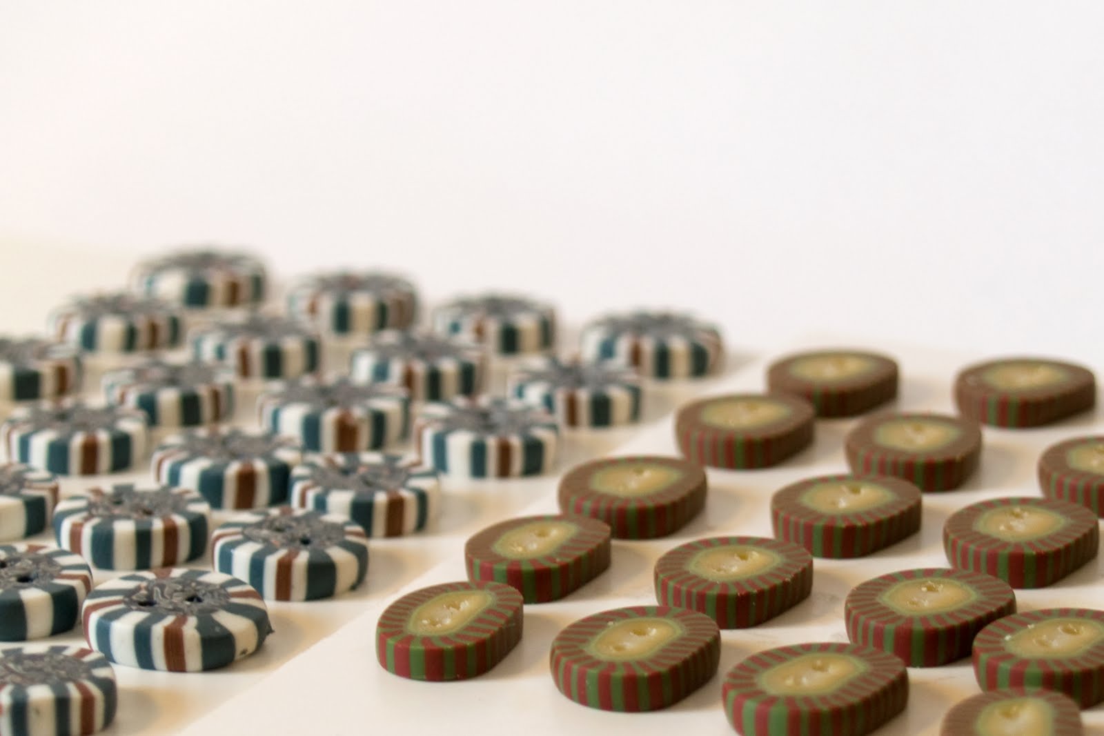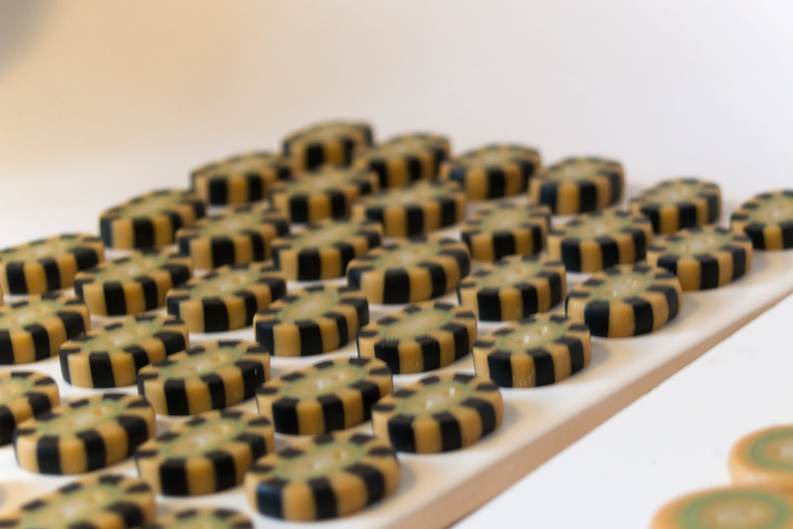 Da ich die Woche vorher in meiner "Knopfmanufaktur" weiter produziert hatte, mir aber etwas die Zeit davongelaufen ist, habe ich einfach die fertigen, losen Knöpfe mitgenommen.