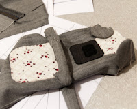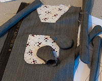 ...außerdem ist sie der Grund für mich gewesen, nach fast 10 Jahren mal wieder einen Kammgarnwollstoff zu verarbeiten; meine Patchworkstoffe mag ich ja sehr - aber das ist nun vor allem eine optische Aussage...nix gegen Baumwolle in Leinwandbindung...aber der Fall ("drape"? "Drapierungsfägihkeit?), die Schwere, das Anschmiegsame von "meinen" Herrenanzugsstoffen...das ist aber taktiles Erleben und schwer zu erklären...öhm, ich schweife ab^^. Sollte ja um Hilde gehen. :-)