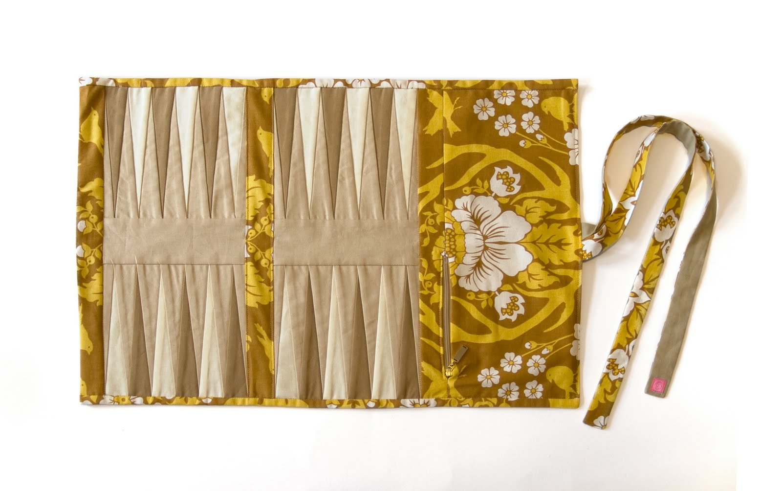 Letzte Woche habe ich es endlich geschafft (so vieles schaffe ich gerade nur "endlich", da meine To-Do-Liste länger und länger wird durch all die vielen Ideen die ich habe...), ENDLICH also geschafft, mich an die Umsetzung einer zweiten Variante meines Roll-Backgammons zu machen. Hier ist sie also, die Version mit integrierter Tasche.Überhaut sind meine Backgammon gerade das Einzige was ich nähe, bei dem ich guten Gewissens von "Patchwork" sprechen kann - also mehr davon!