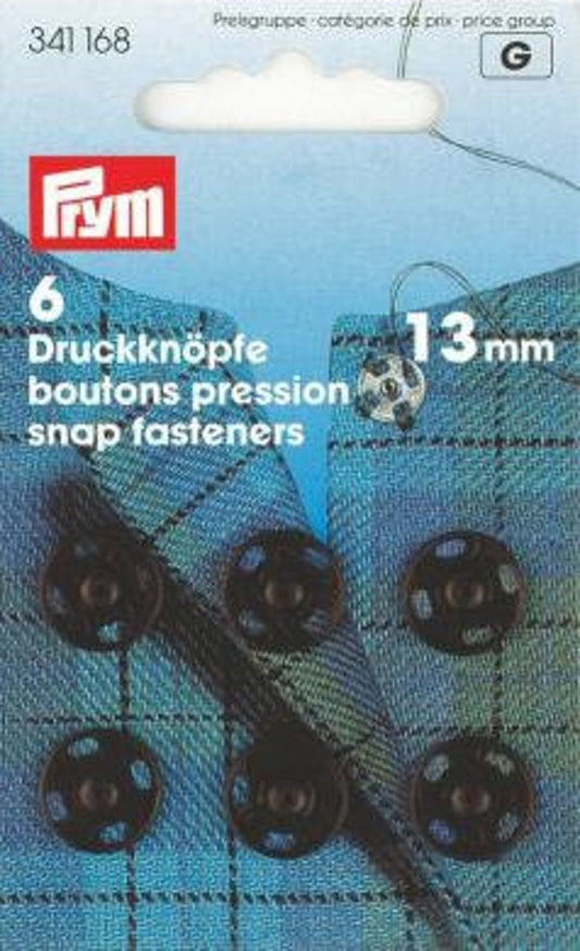 6 Druckknöpfe zum Annähen schwarz Metall 13mm Prym