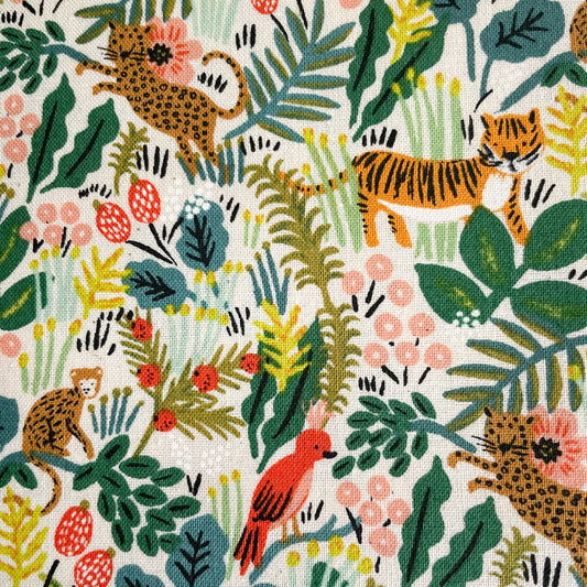 25cm Baumwollstoff Jungle Hunter – Menagerie natur Patchworkstoff mit Dschungeltieren wie Tiger und Leoparden von Cotton + Steel