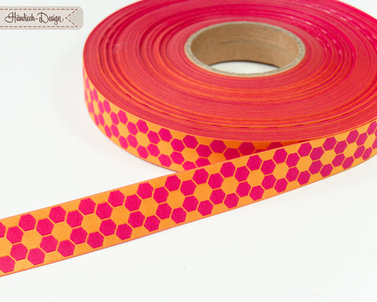 Webband Retro-Blumenmuster pink/gelb und orange/lila