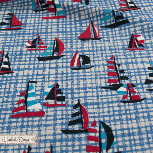 25cm Canvas (BW/Leinen) „Tréfle Marine" Segelschiffe/Gitter natur/blau 21,60€/m kokka