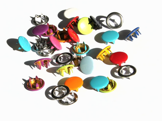 Ob zum Annähen oder Einschlagen ("nähfrei") mit Hammer oder speziellen Zangen, Druckknöpfe sind beliebte Verschlüsse für Taschen, Kleidung und andere Accessoires.