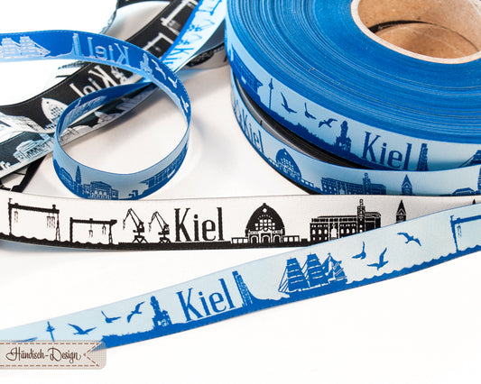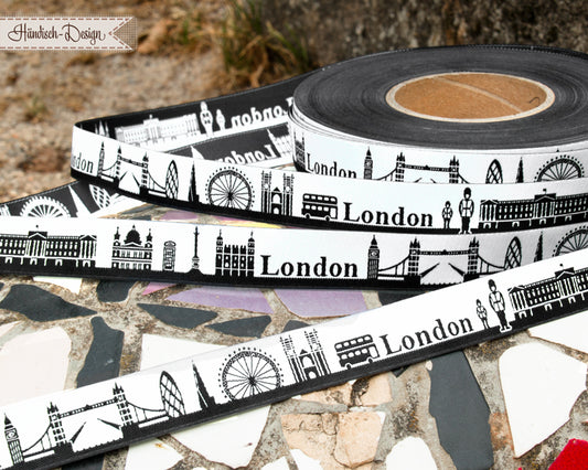 Alle Skylinewebbänder sind etwa 17 mm breit, aus 100 % Polyester und eignen sich hervorragend um auf etwas genäht oder um etwas herum gewickelt zu werden.