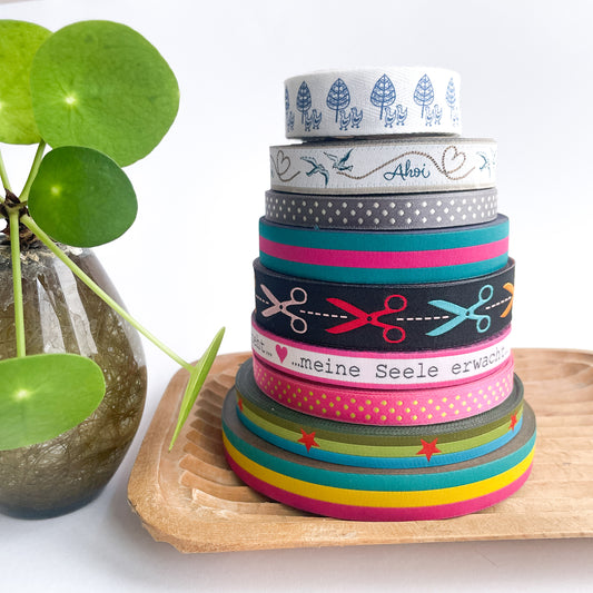Webband Sterne Streifen grün/blau/orange farbenmix