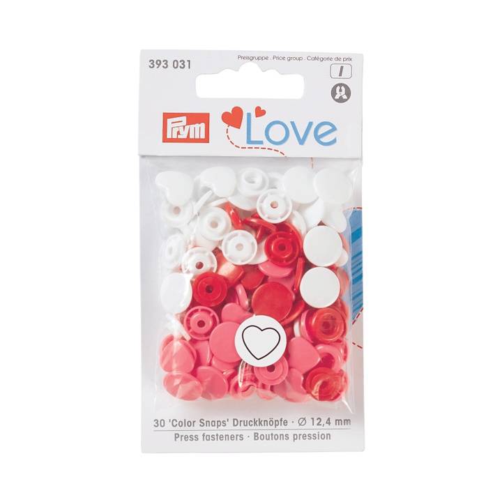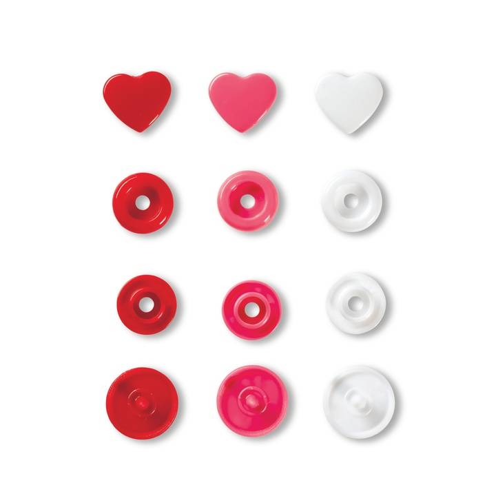 30 Druckknöpfe „Color Snaps Love" Herz pink/weiß/rot 12,4mm Prym
