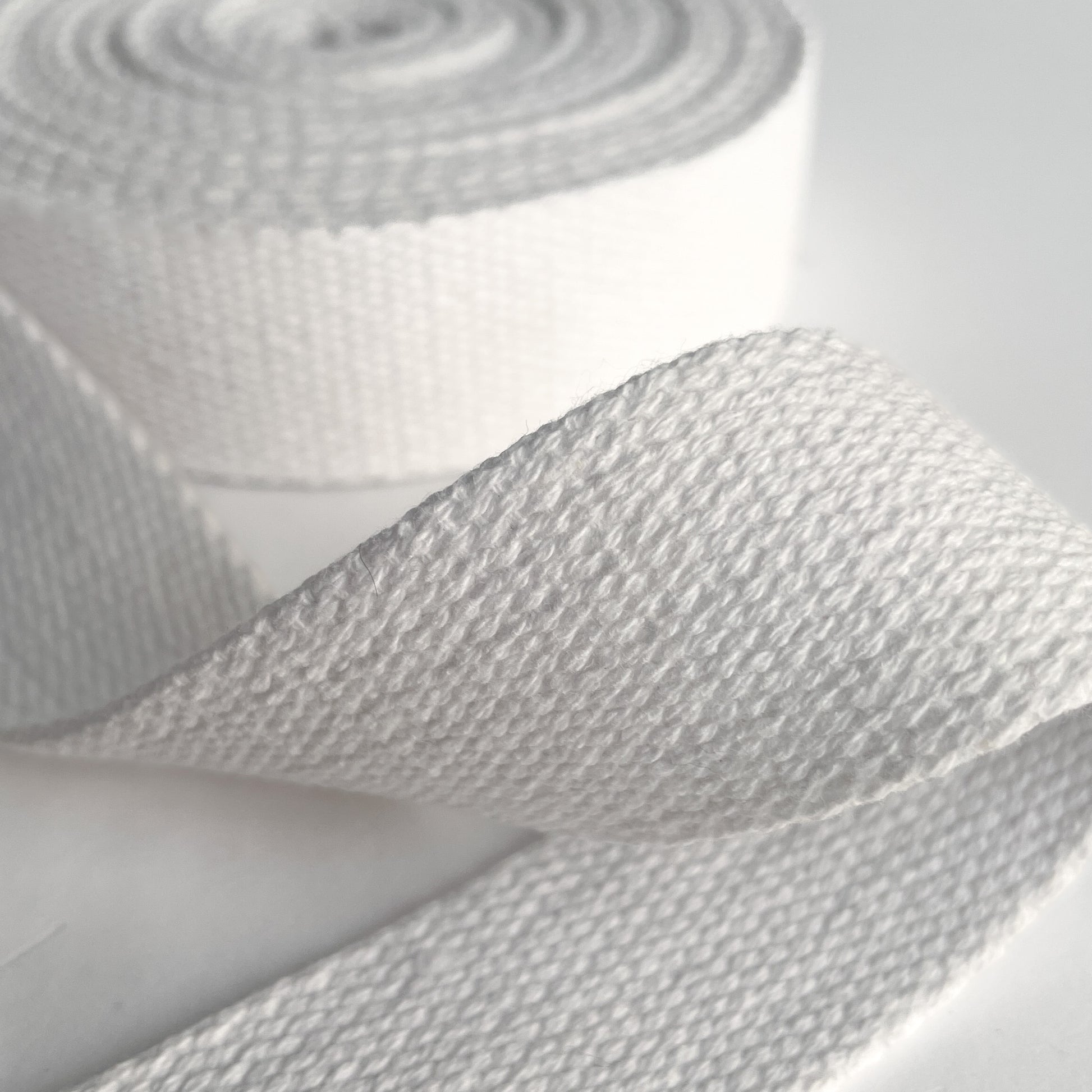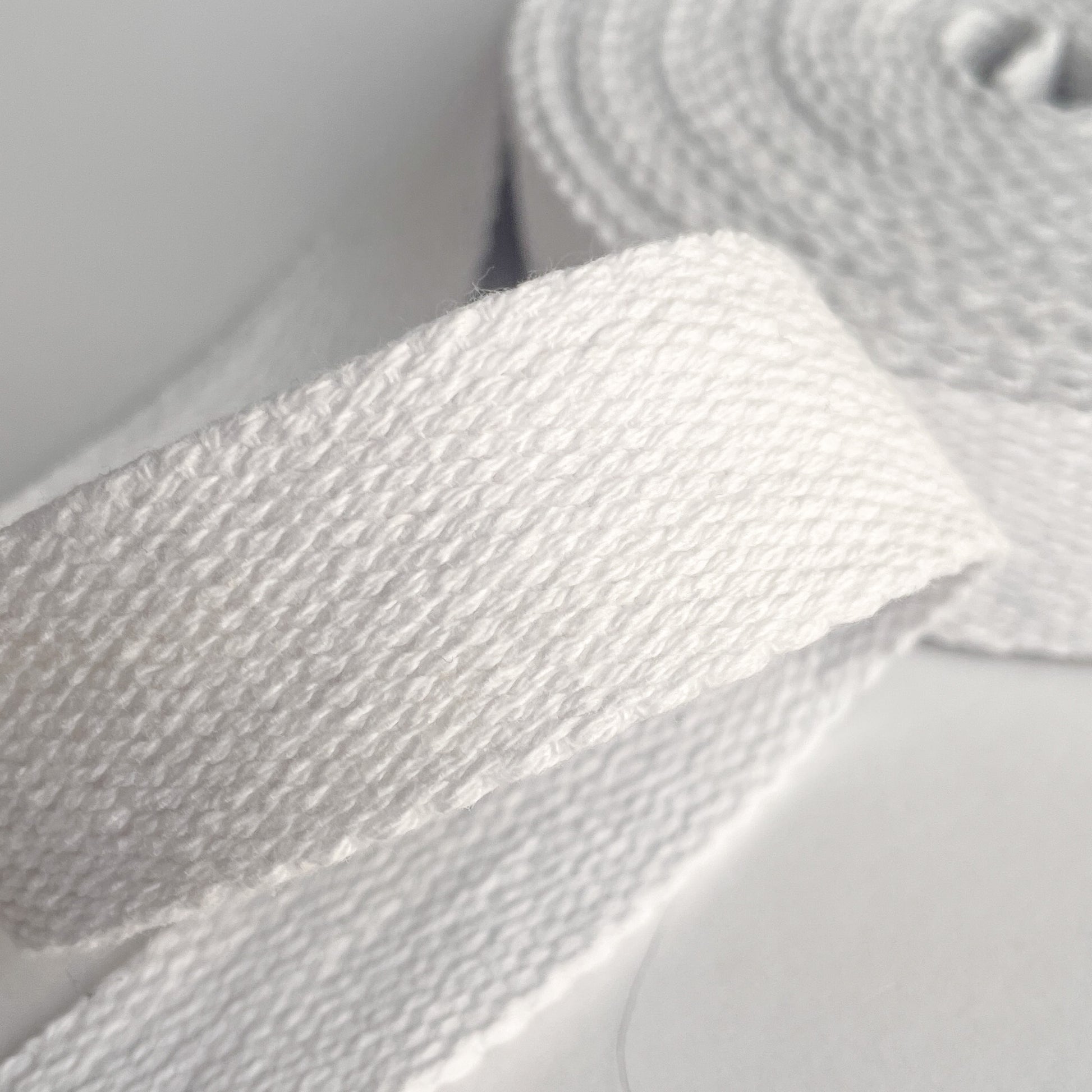 Robustes und haltbares Baumwollgurtband in schneeweiß.