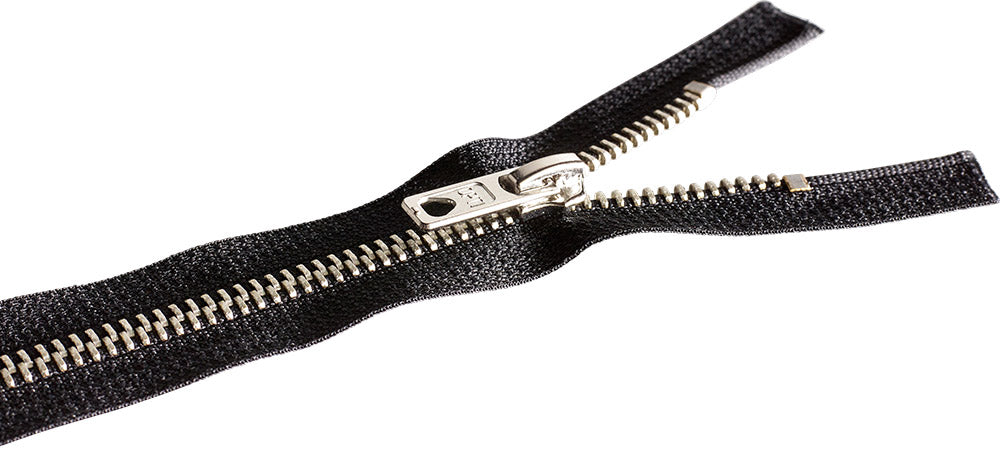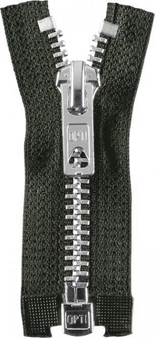 Teilbarer Reißverschluss von Opti mit silberfarbenen Metallkrampen.