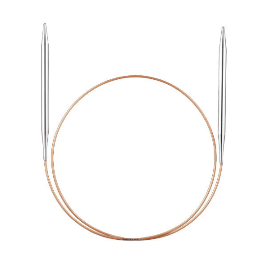 Metallrundstricknadeln verbunden mit einem Kunststoffseil von Addi - hergestellt in Deutschland.