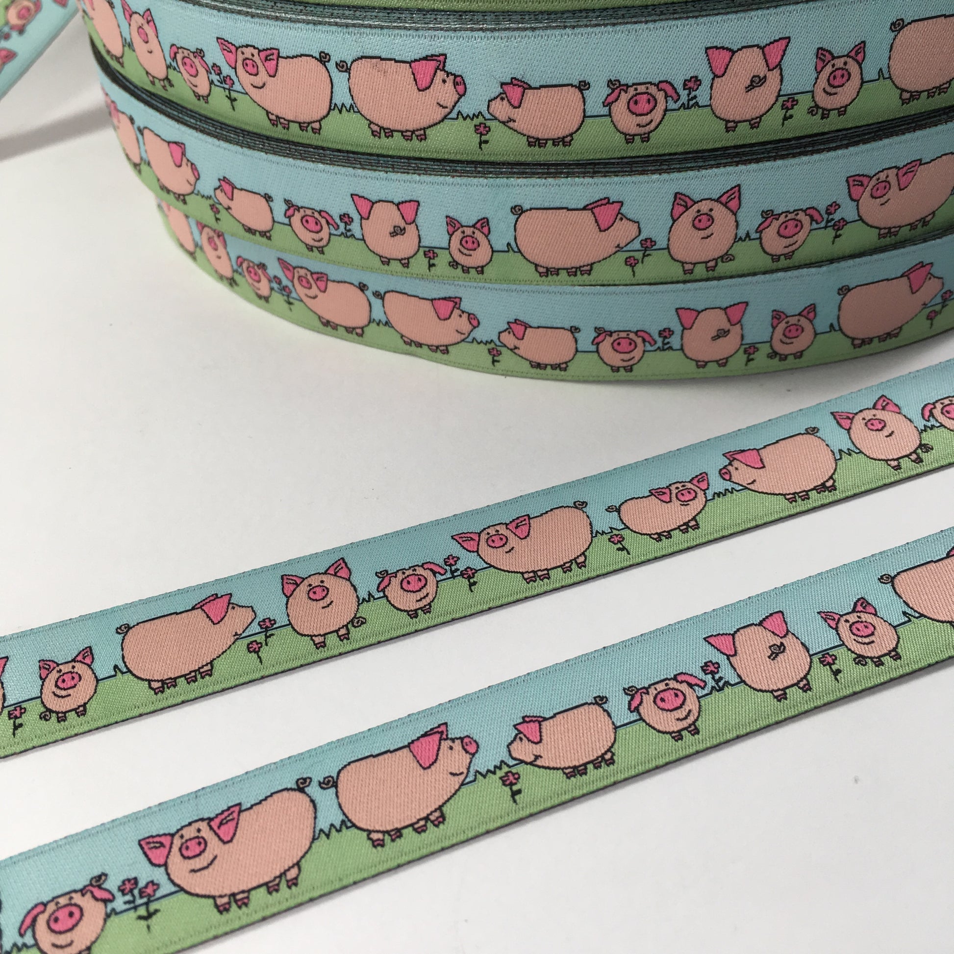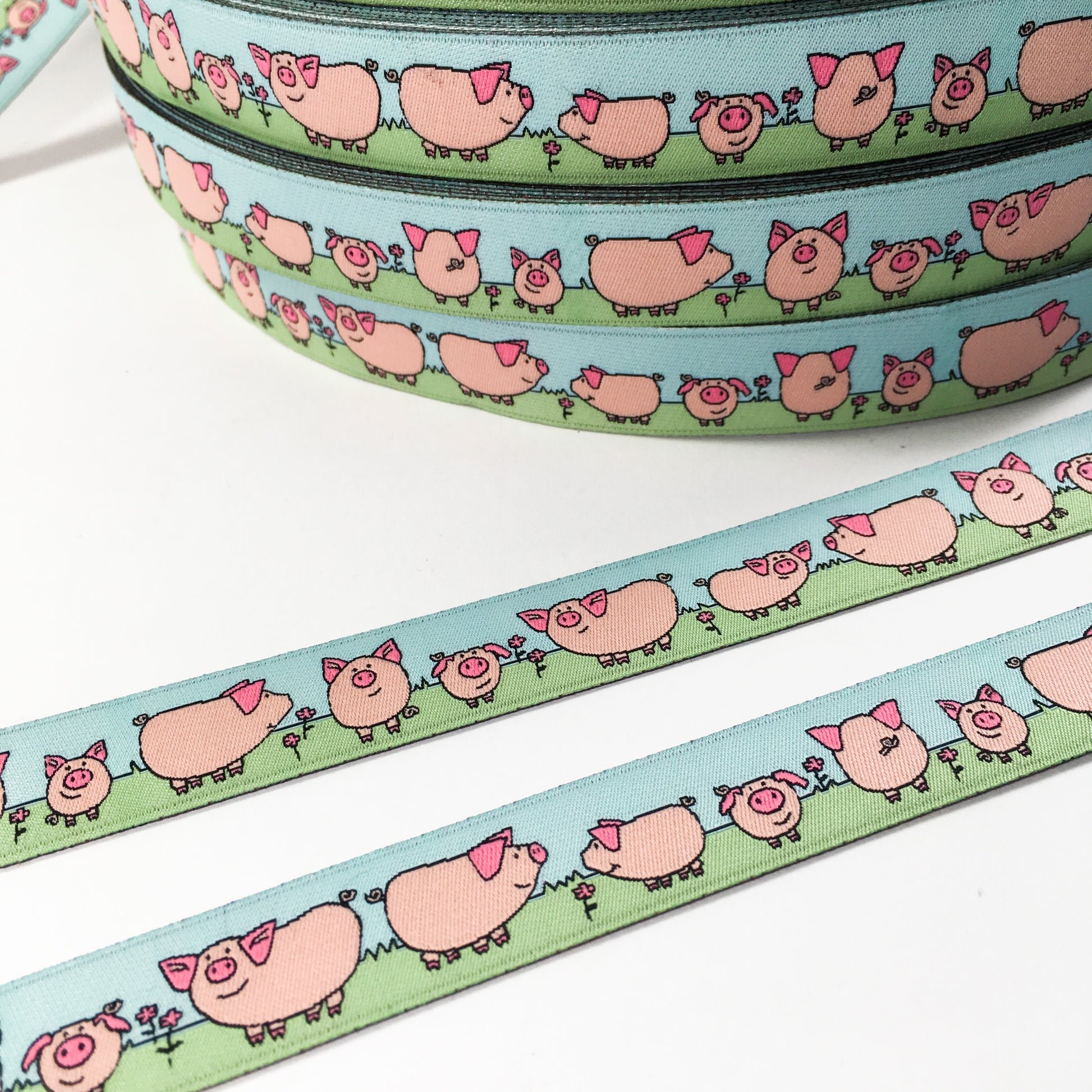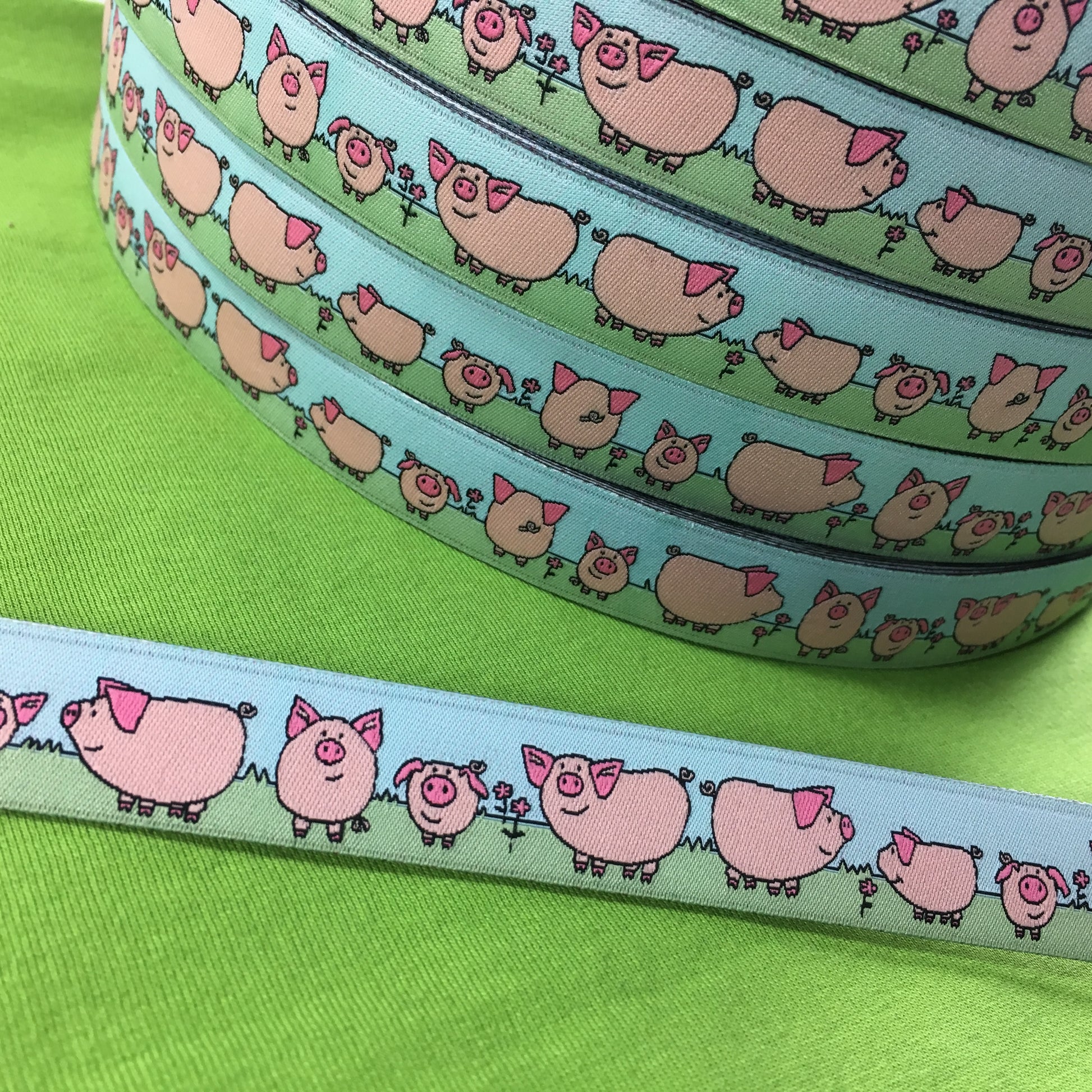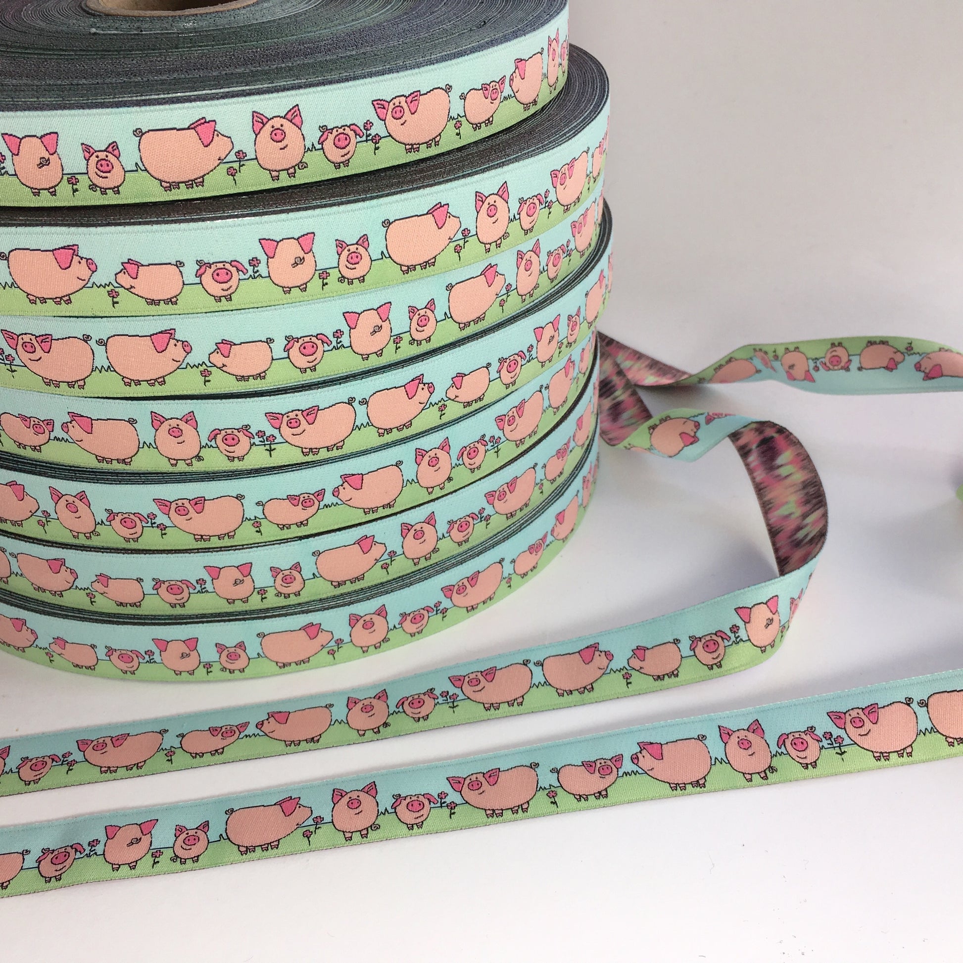 Webband mit lustigen kleinen und großen Schweinchen - die bringen viel Glück!